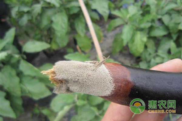 绵疫病:各生育阶段均可发病。幼苗期发病,茎基部呈水渍状,发展很快,常引发猝倒,致使幼苗枯死。成株期叶片发病,产生水渍状不规则形病斑,具有明显的轮纹,但边缘不明显,褐色或紫褐色,潮湿时病斑上长出少量白霉。茎部受害呈水渍状缢缩,有时折断,并长有白霉。花器受侵染后,呈褐色腐烂。果实受害最重,初生水渍状圆形小斑点,边缘不明显,稍凹陷,迅速扩展延及半个至整个果实。病果病部黄褐色或褐色,逐渐收缩、变软,表面出现皱纹。湿度大时,病部长满茂密的白色絮状霉层。病果后期多脱落或干瘪收缩成黑褐色僵果。
