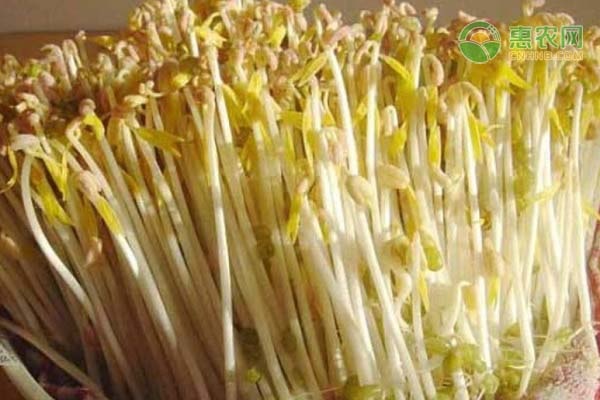 4、豆芽在采收的时候要注意的是豆芽的采收标准是豆芽的苗高15厘米左右,芽苗整齐,茎白叶翠基本上脱壳或松壳,同时根系洁白明朗清晰,一根主须,侧须少或无,拨起有少许河沙粘连,清洗后即可食用。