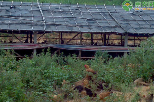 主要用于果园养鸡,可在建筑结构上修建成斜坡式的顶棚,坡面向南,北面砌一道2米高的墙,东西两侧可留较大的窗户,南侧可用尼龙网或铁丝网围隔,但必须留大的窗户。面积以16平方米为宜,这种鸡舍通风效果好,可以充分利用太阳光,保暖性能良好,南方、北方都适用。
