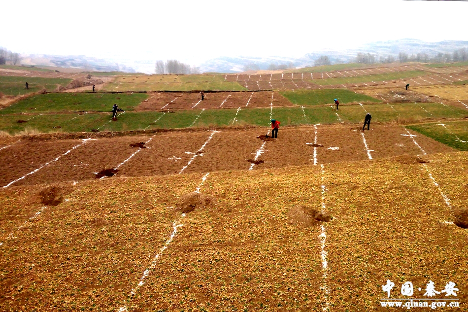近年来,秦安县不断加强花椒种植面积,按照“串点成线、连线成片、点线齐抓、整体推进”的工作思路和优化品种布局、高标准建园、精细化管理的工作要求,在王窑、安伏、千户、王铺、中山等适宜栽植区域通过县上无偿供苗、镇上统一放线、群众自发栽植、技术人员全程指导等方式,建成万亩基地3个、千亩基地10个。2017年,秦安县在王铺镇、中山镇这两个深度贫困的高海拔山区新建花椒基地10.4万亩,基本实现了适宜花椒栽植区全覆盖,进一步优化了农业产业结构,提高了农业综合生产能力,助力当地贫困群众脱贫致富。