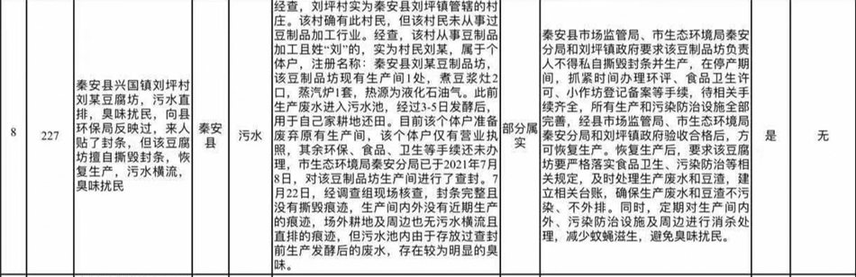 截止2021年7月25日,我市累计收到省第三生态环境保护督察组转来信访共20批288件。其中:市住建局4件(重点信访3件),市林草局1件(重点信访),市生态环境局1件(重点信访)、市水务局1件,市民政局1件,市商务局1件,市城市更新中心1件,秦州区124件(重点信访20件),麦积区68件(重点信访23件),甘谷县44件(重点信访14件),武山县10件(重点信访6件),秦安县15件(重点信访3件),清水县9件(重点信访2件),张家川县8件(重点信访2件)。转办信访中重点信访75件,一般信访213件,已全部转交市林草局、市水务局、市住建局、市民政局、市应急管理局、市生态环境局、市自然资源局、市商务局、市城市更新中心等部门和相关县区办理。目前已办理上报230件,其中办结129件,阶段性办结101件,约谈5人,问责23人,责令整改31件,行政处罚30件,罚款51.97万元。其余信访正在办理。