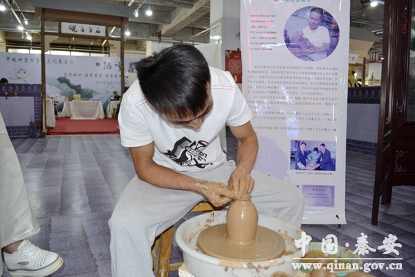 秦安制陶分布于兴国镇康坡村,胡家河沟,王尹乡王川、尹川一带。始于秦安大地湾遗址。秦汉时期,除生产生活用具外,还能生产陶猪、狗、俑、铃等装饰品。唐宋时期,秦安制陶业达到了精湛的工艺水平。明清时期,秦安制陶技术广泛普及,城乡各地都有作坊,制品有盆、罐、坛、碗等,陶器原料为红粘土,生产工序基本和生产砖瓦相同。制品逐渐发展为几十种。康坡所制的陶器由于韧性好、耐腐蚀,能承受一般性撞击,但都以生活日用品为主。到了70年代末由于秦安大地湾石器时代遗址的重大考古发掘,康坡村村民康新田萌发了制作传承再现彩陶文化的念头,之后他认真潜心钻研,多方求教就如何走出自己传统制陶手工艺的老圈子。在产业兴县的政策扶植下,在文化主管部门业务人员的指导下并取得了文化主管部门的认定许可,将他的制陶手工艺品,指定为秦安县博物馆彩陶基地。