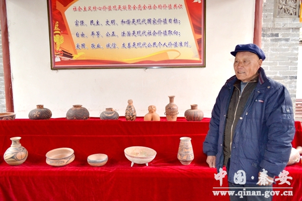 秦安彩陶工艺,具有一定的文化历史价值,是抢救、传承、发展旅游资源的一个选项,生产工艺技术复杂、手工工艺比较费时,由于掌握关键技术的制陶艺人康新田四代传人和村里少数人,所以产品数量较少,随着旅游产业的兴起,目前的家庭作坊式生产现状已远远不能适应市场经济的需求。所在辖区的制陶艺术大多数是以粗放型的青灰陶的制作和销售,虽有作坊,生产只能是简单的生活用品,而制作彩陶的仅有康新田一家,为此彩陶工艺制作面临濒危失传,亟待抢救、保护、传承。