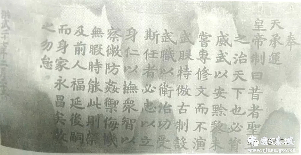 皇帝制曰:昔者,圣王之治天下也,必资威武以安黔黎,未尝专修文而不演武。朕特仿古制,设武职以卫治功。受斯任者,必忠以立身,仁以抚众,智以察微,防奸御侮,机无暇时。能此,则荣及前人,福延后嗣,而身家永昌矣!敬之勿怠!