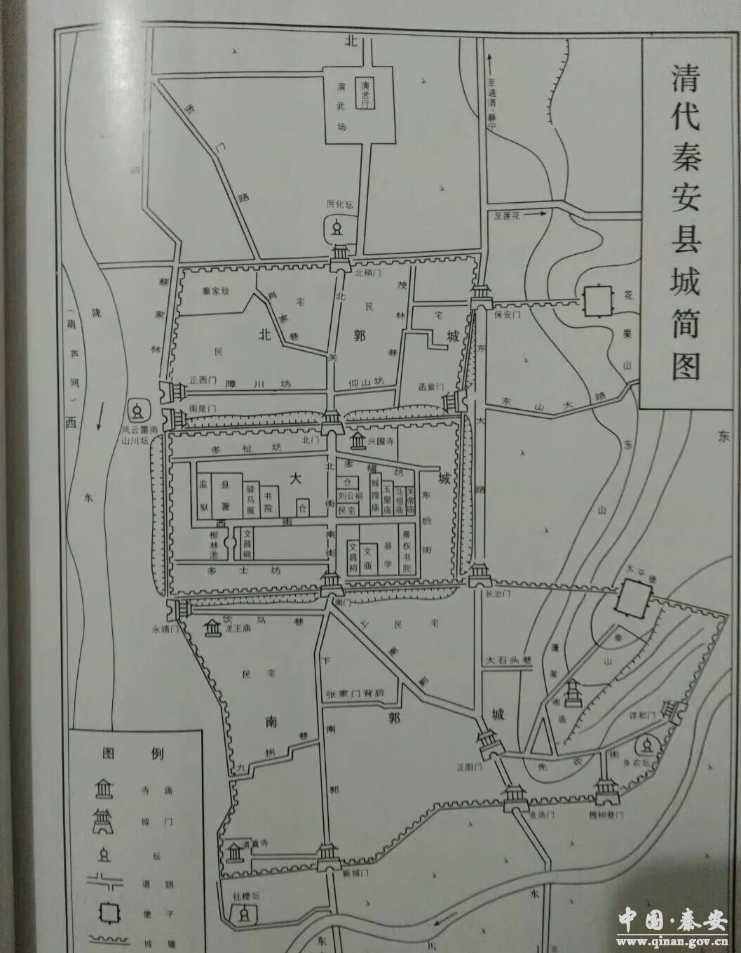 笔者有两个设想:一是请人用传统地图的绘制方法画一副《秦安古城图》,包括县城、北郭城和南郭城。古建筑有:城内的县衙(今不存)、兴国寺、文庙、关帝庙(已拆毁)等,北郭的镇江王庙(已拆毁),南郭的泰山庙、春场行宫(已拆毁)等。二是按照这幅图,做一个秦安老城的沙盘和H5电子相册。天水市博物馆有秦州城的沙盘和动画演示、陇西县博物馆有巩昌府地图和陇西县城沙盘。而秦安尚未有。