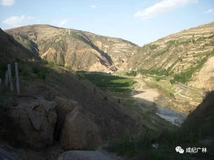 出秦安城北门,沿着华双公路北上,依次是郊区三里铺、十里铺。沿途楼房栋栋,房舍青青,果蔬片片。大约行程10里后,从宁夏西吉月亮山启程的葫芦河宛如一条金黄的玉带漂浮在身旁,让视野立马变得狭窄起来,,两边黑黝黝的石山俨然扼守在葫芦河两旁。隔河是西面的黑龙山,紧贴身旁的是青龙山(唐帽山)。行至此处,眼前的峡谷地带被称为锁子峡。