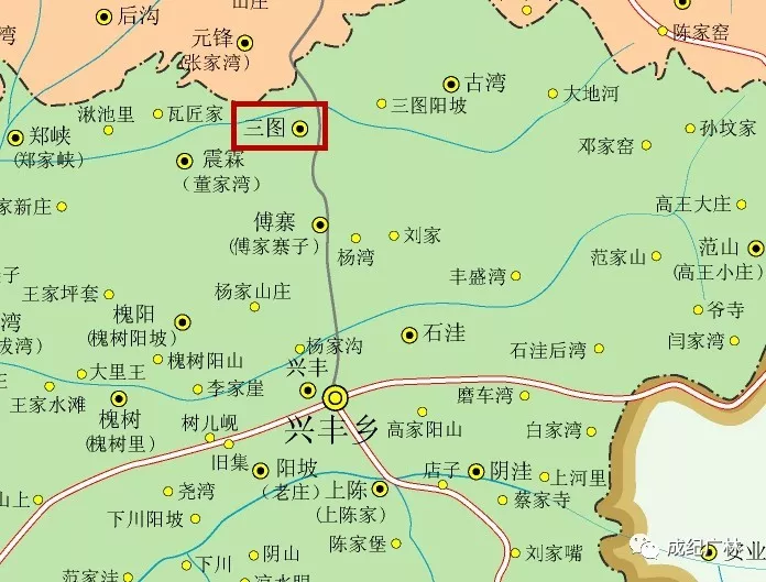 三图:位于兴丰镇,毗邻中山镇。下辖的两个自然村,依地理位置分别取名三图阴山、三图阳山。有泉湫,常年不涸。2015年,三图村总户数224户,人口1157人。