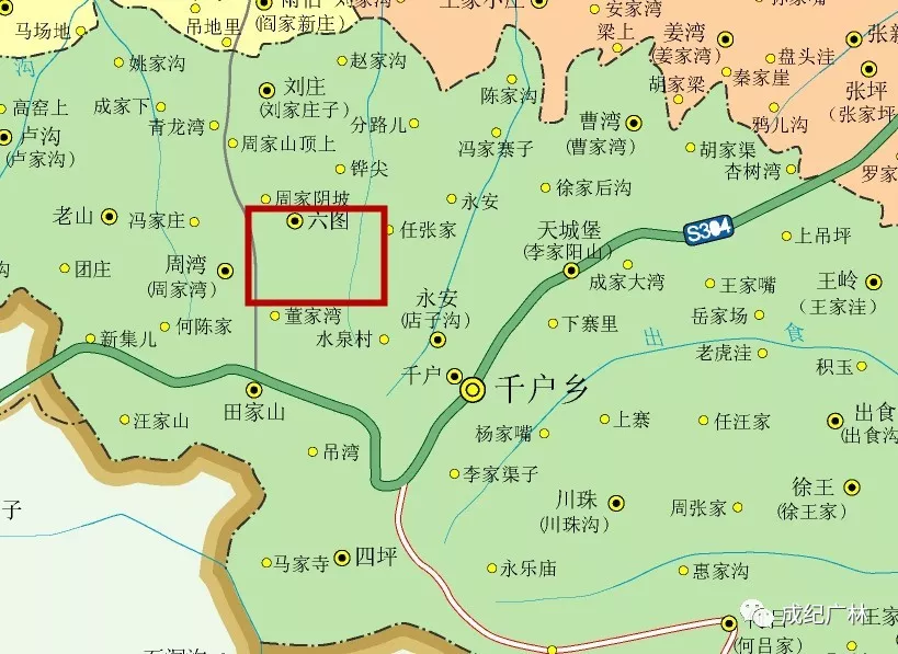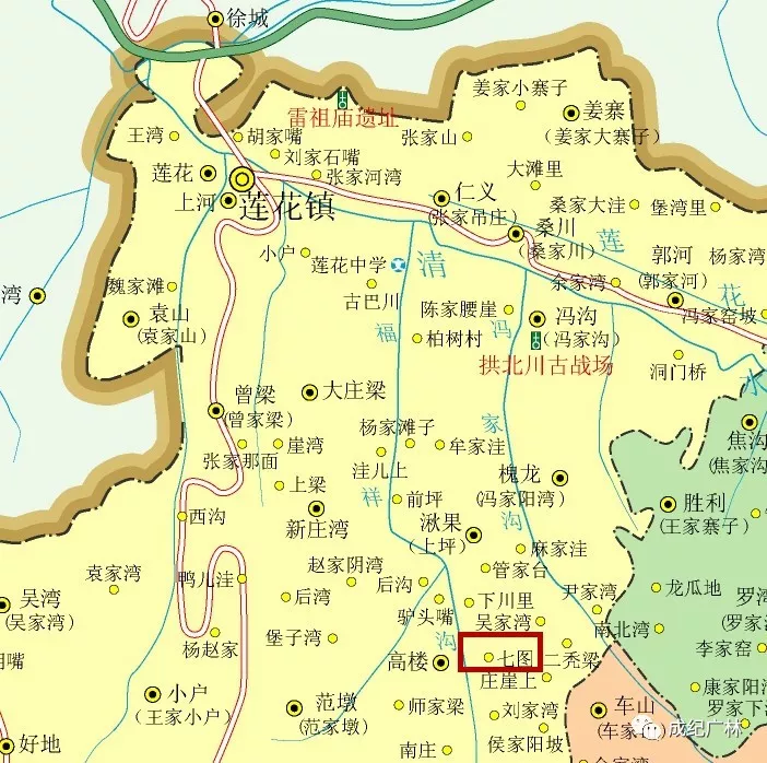 六图:位于千户镇盤龙山下,有山若蛟龙,盘踞于山巅,故名盤龙山。