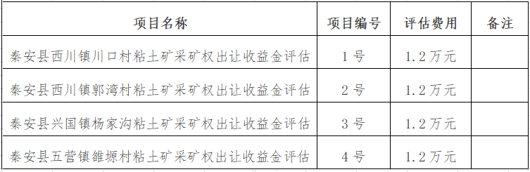 根据自然资源部《矿业权评估管理办法(试行)》等有关法规,按照“公开、公平、公正”的原则,秦安县自然资源局拟公开选择评估机构承担矿业权项目的评估工作,具体组织工作由秦安县自然资源局地矿股负责。现将有关事项公告如下: