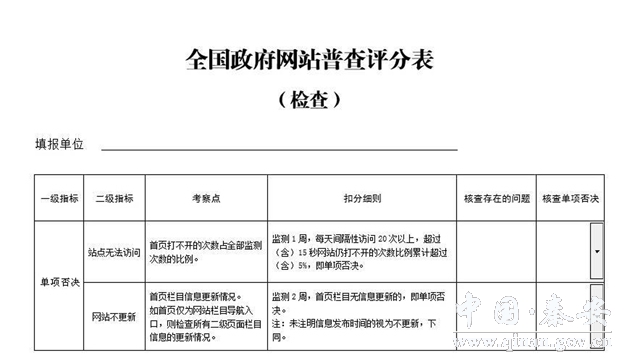 全国政府网站普查评分表