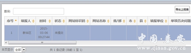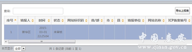 组织单位可使用系统“导出上报表”功能,导出政府网站和栏目(系统)基本信息,并生成excel文件格式的上报表,打印签字盖章后呈报上级组织单位。