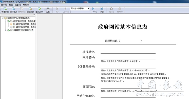 填报单位运行客户端软件,打开“政府网站和栏目(系统)基本信息表”并新建数据,填写政府网站和栏目(系统)基本信息并保存。表单所有信息项均为必填项,如确无内容请填写“无”。