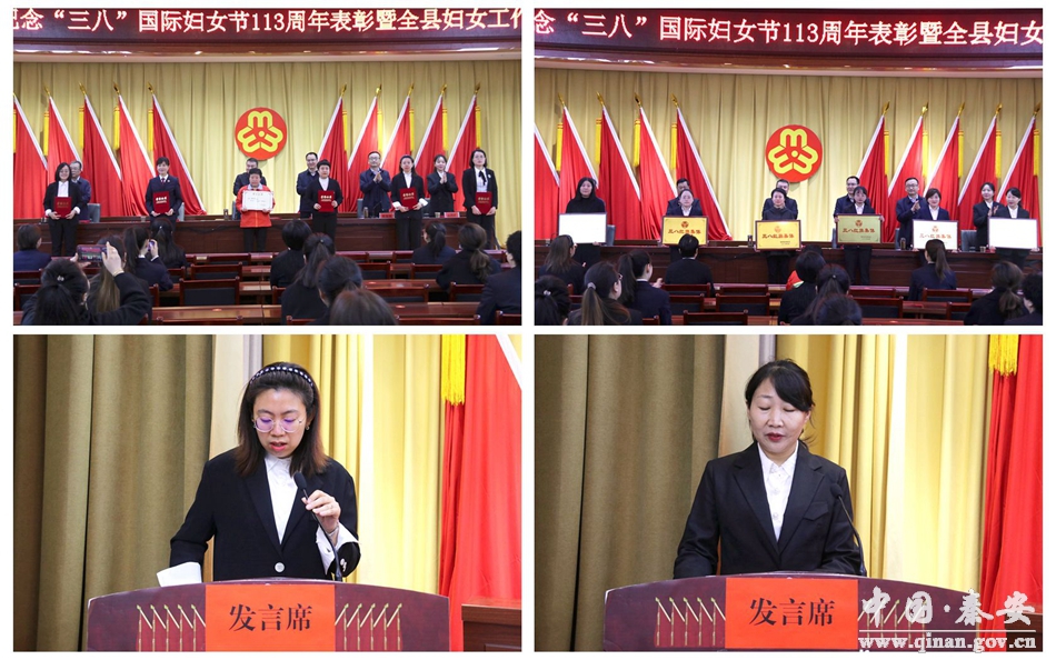 3月8日,秦安县“三八”国际妇女节113周年表彰暨全县妇女工作会议在兴国镇政府礼堂召开。县委常委、纪委书记、监委主任张天龙,县委常委、兴国镇党委书记董文海,县人大常委会副主任吴建忠,县政府副县长张涛涛,县政协副主席冯银才,县妇联全体干部,17镇分管负责人、妇联主席,县直各部门妇女委员会主任、受表彰的先进集体和先进个人以及部分行业妇女代表共计100余人参加会议。