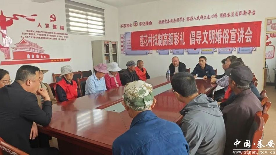 为抵制高额彩礼,破除婚俗陈规陋习,树立文明新风,近日,秦安县莲花镇组织各村开展以“抵制高额彩礼,倡导文明婚俗”为主题的宣讲活动,以实际行动推动移风易俗,引导群众摒弃攀比之风,让文明新风吹遍莲花镇每个角落。