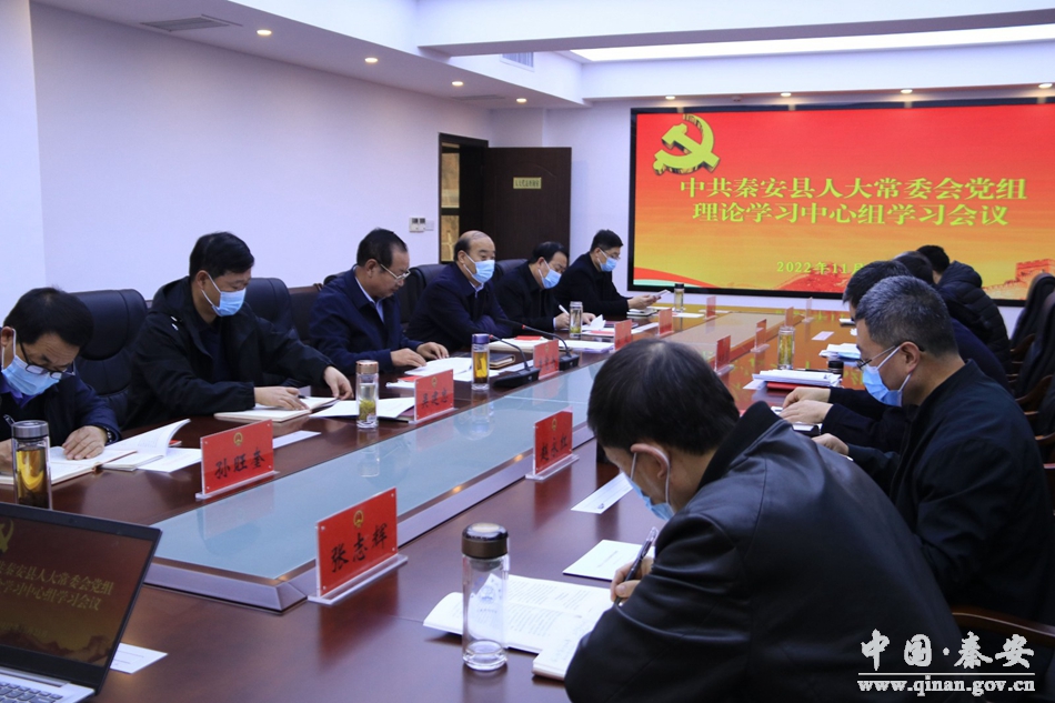 11月25日,秦安县人大常委会党组书记李宽余主持召开县人大常委会党组理论学习中心组学习会议。会议学习了习近平总书记在中国共产党第二十次全国代表大会上的报告、《中国共产党章程》和省、市委人大工作会议精神。各位党组成员围绕学习宣传贯彻党的二十大精神,紧密结合各自的学习思考和实际开展了研讨交流。