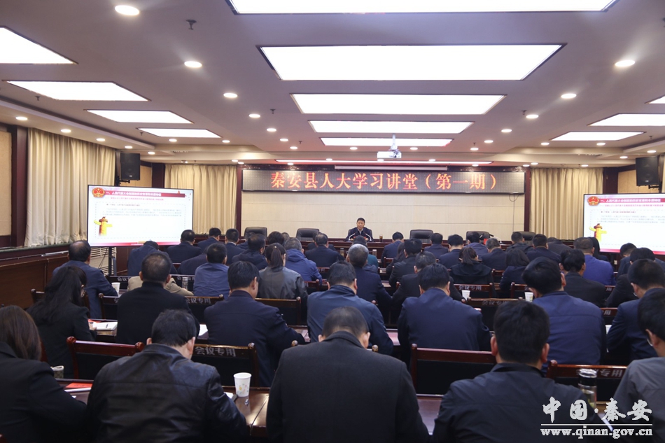 4月26日,秦安县人大学习讲堂开讲,县委书记周济参加启动仪式并讲话,县人大常委会党组书记、主任马顺祥作《深入学习贯彻党的二十大精神,与时俱进完善人民代表大会制度》的主题讲座。县人大常委会班子成员、十九届人大常委会组成人员,各镇人大主席、副主席,部分市县人大代表和人大常委会机关全体干部职工共60余人聆听讲座。