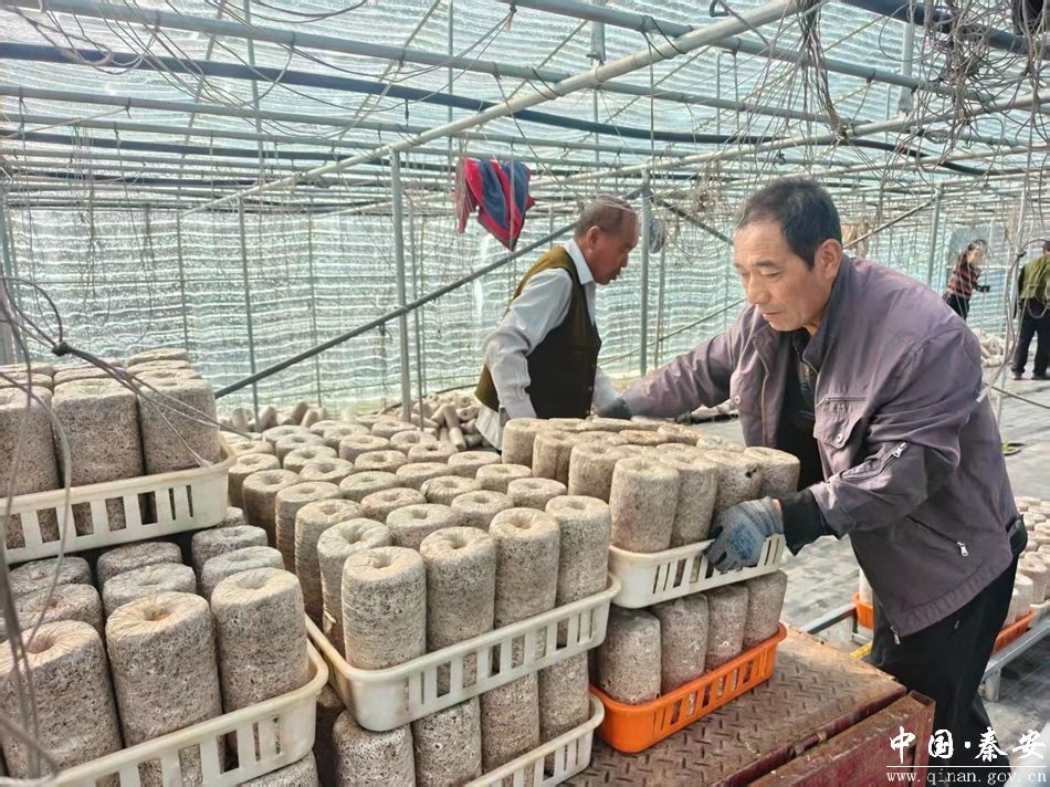 在大棚内,呈现出一片热火朝天的忙碌景象。党员干部纷纷挽起袖子、俯下身子,分工协作,有条不紊地开展菌棒搬运、打孔等工作。大家个个干劲十足,现场展现出一幅干群同心、合力抢抓农时的生动画面。