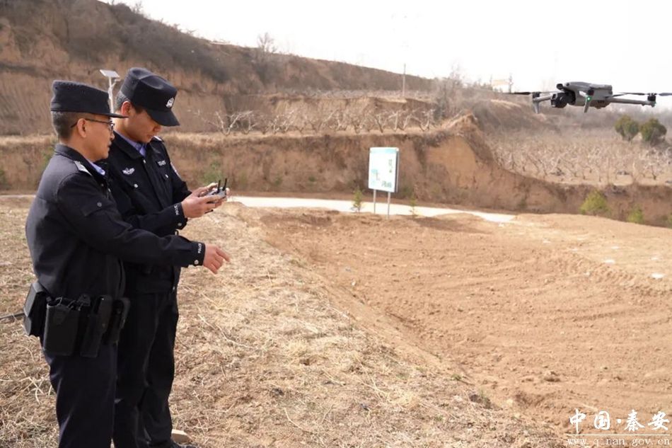 结合全县春耕期间辖区村庄安全防范薄弱和盗窃类案件高发实际,秦安公安积极打造“空地一体”智慧巡防体系,采用警用无人机对重点区域开展巡航,地面派出所民警与义警队伍互补的形式,持续加大对镇村街道、村落巷道、田间地头的巡防力度。采取车巡、步巡相结合的方式,重点针对农资仓库、果蔬大棚及无人看守院落等重点部位,开展全方位、全时段巡逻,进一步提高见警率和管事率,有效增强社会面威慑力、控制力,为春耕生产营造了安全、稳定的社会治安环境。