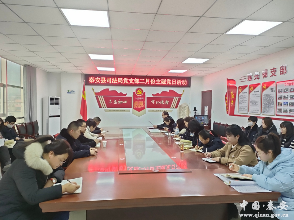 2月11日,秦安县司法局党支部组织全体党员开展了2月份“主题党日”活动。 会上,全体党员在党支部书记的领学下学习了习近平总书记二〇二二年春节团拜会上的重要讲话精神以及《中国共产党党员教育管理工作条例》重点章节。会议强调,习近平总书记重要讲话回顾了过去一年党和国家事业取得的新的显著成就,提出了今年工作的总体要求,指出了团结奋斗的重要意义,鼓舞斗志,振奋人心。新的一年,全体党员干部要踔厉奋发、笃行不怠,以虎虎生威的雄风、生龙活虎的干劲、气吞万里如虎的精神,乘势而上,奋勇争先,推动全县司法行政工作迈上新台阶。 集体学习结束后,全体党员进行了学习心得分享,大家纷纷表示,《中国共产党党员教育管理工作条例》的学习让大家对“党员”有了进一步的认识,以后要把《条例》学在日常、用在实处,不断自我完善、自我提高。