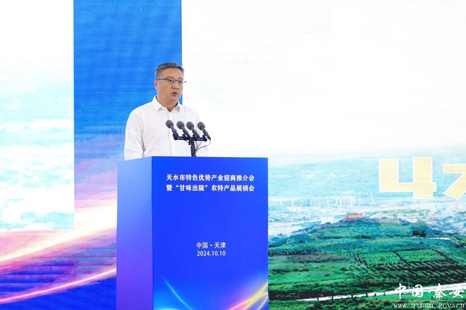 10月10日,天水市特色优势产业招商推介会暨“甘味出陇”天水农特产品展销会在天津市东丽区举行,秦安县委书记周济在会上推介秦安县特色优势产业和招商引资项目,并为“京津冀地区招商大使”颁发聘任证书。县领导夏子文参加活动。