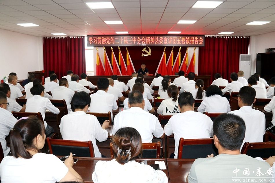 8月22日,学习贯彻党的二十届三中全会精神县委宣讲团报告会在五营镇举行,县委副书记、县长王龙强作宣讲报告。五营镇班子成员、镇村干部及驻村帮扶工作队第一书记参加报告会。